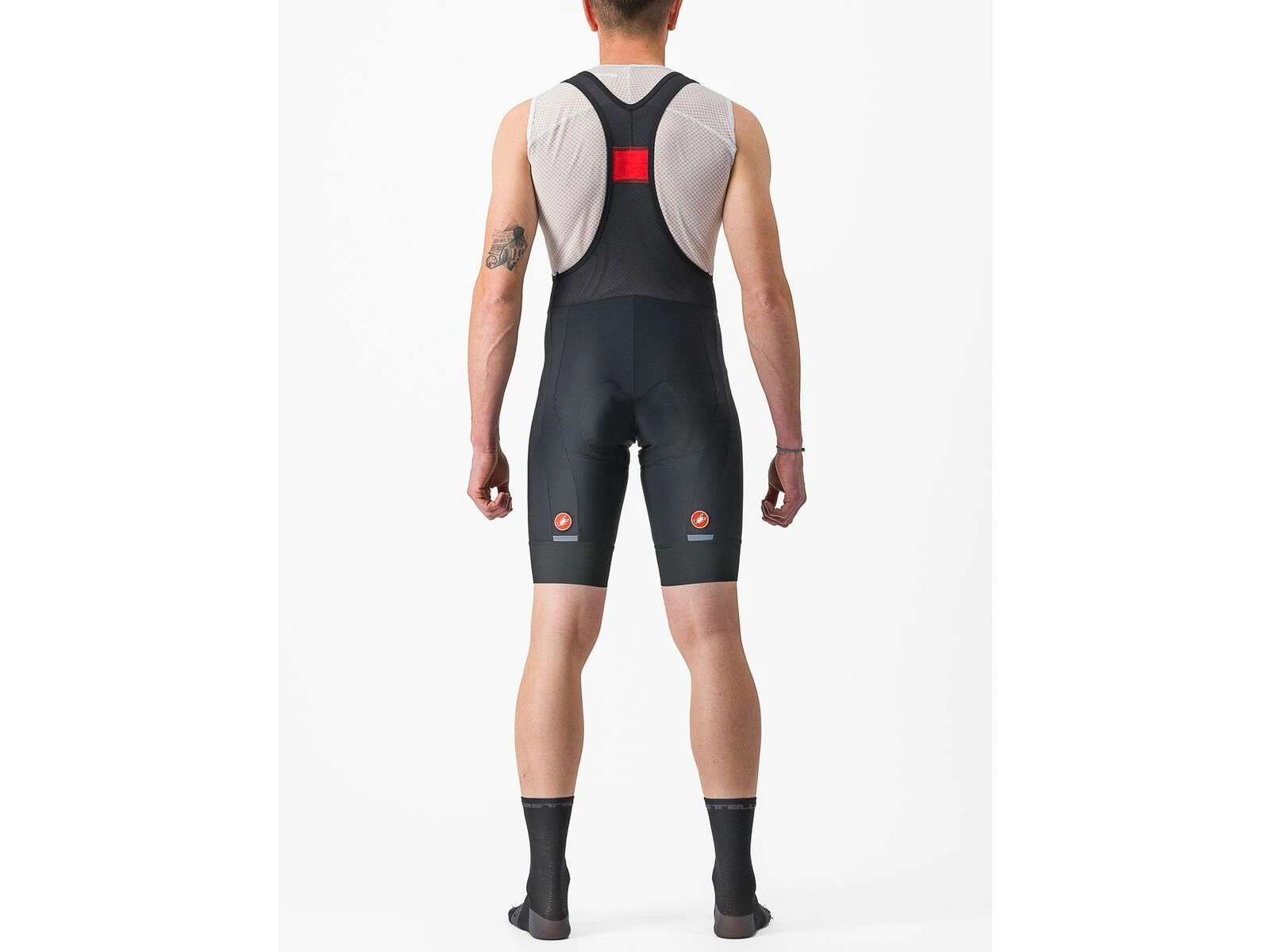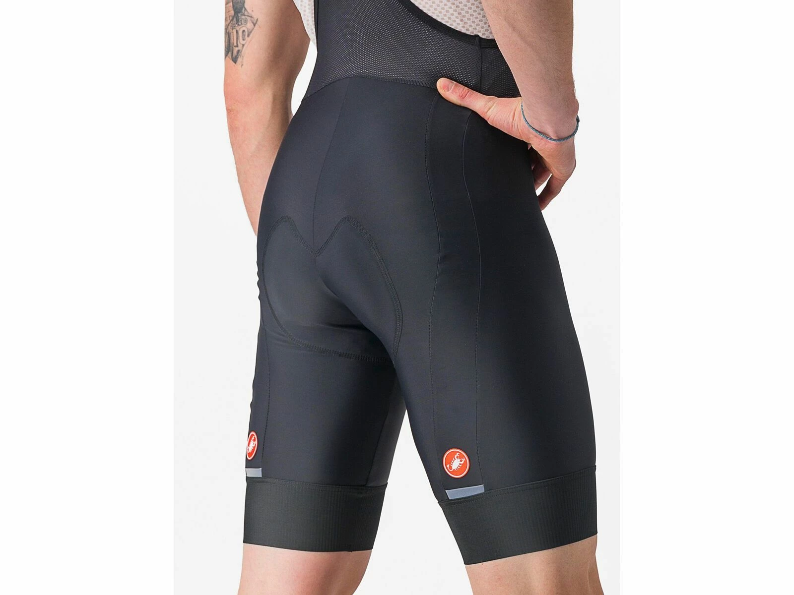 Auch das Einstiegsmodell von Castelli muss schon eine erstaunliche Trägershort sein, um das Skorpion-Logo tragen zu dürfen. Hier kommen hochwertige Materialien, das KISS Air2-Sitzpolster sowie die 8-Bahnen-Konstruktion zusammen – und dazu der Fokus auf Komfort und Langlebigkeit.