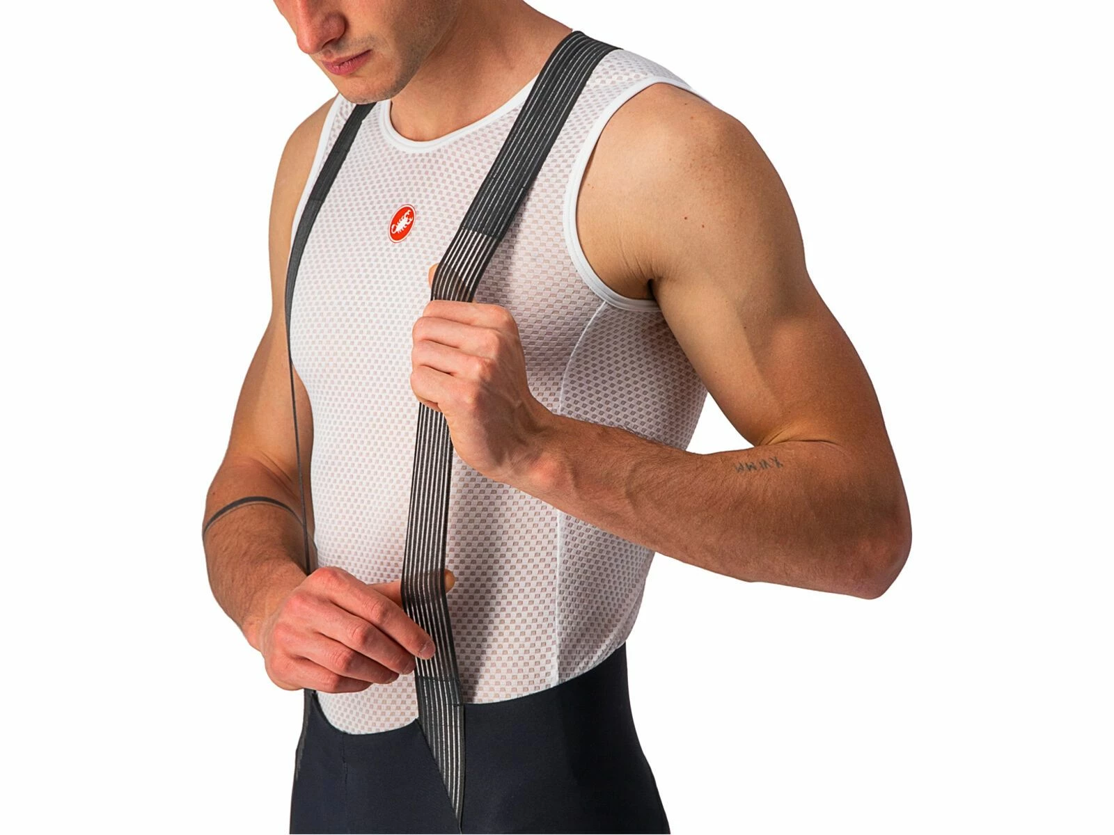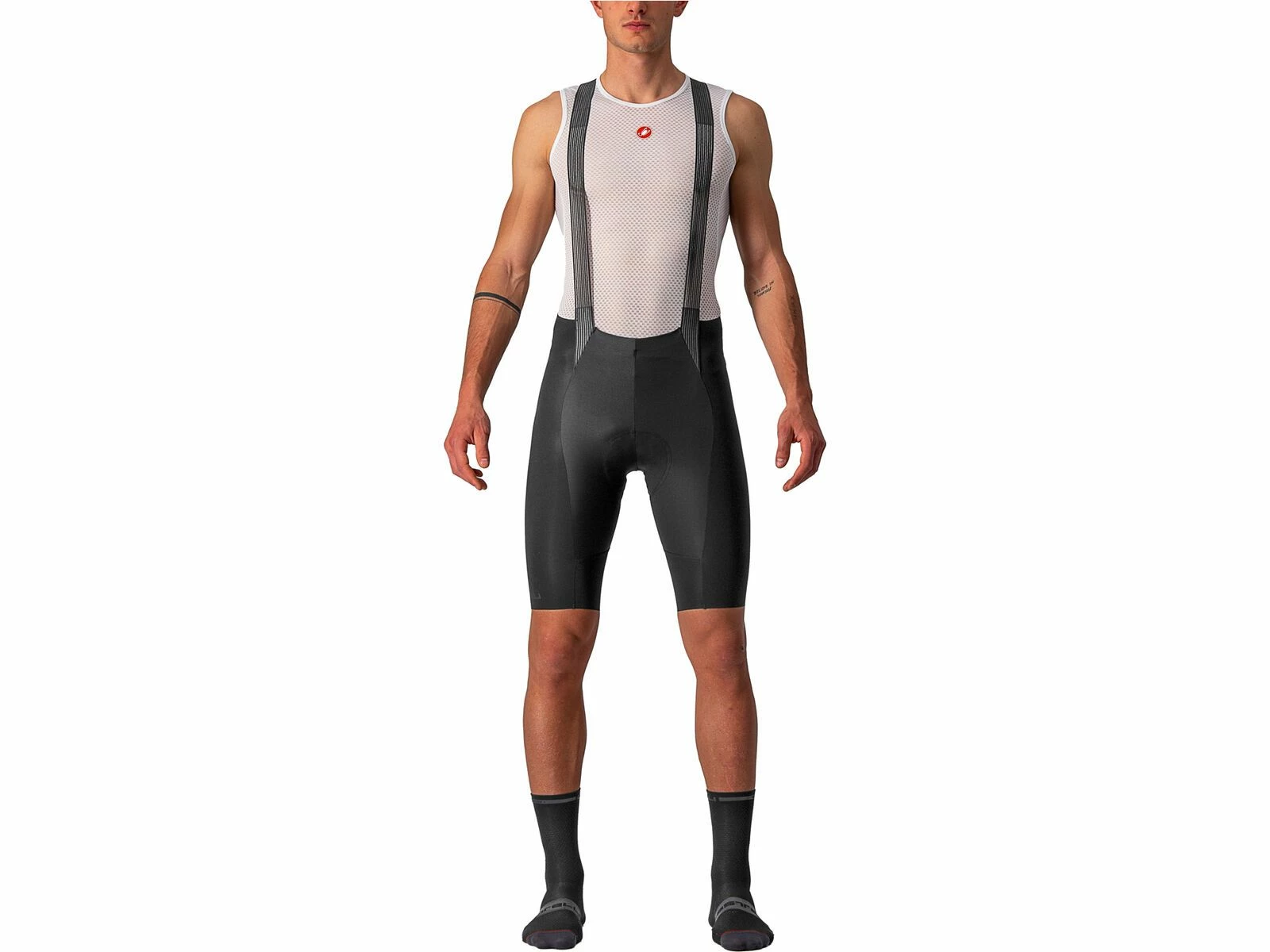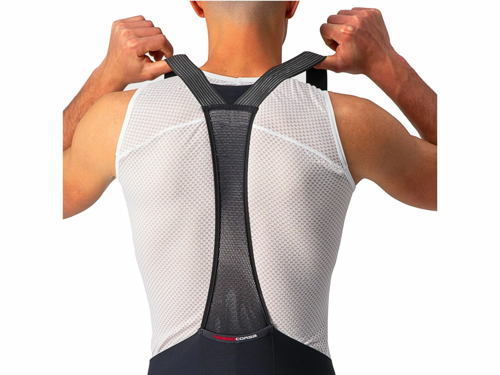 Dank der reduzierten Anzahl von Stoffbahnen und Nähten ist das Tragegefühl buchstäblich „Free“. Tatsächlich besteht die Short aus nur 5 Panels im Vergleich zu 10 beim Vorgängermodell. „Free“ fühlt man sich auch, weil das nahtlos gefertigte Progetto X2 Air Seamless-Sitzpolster weiter verfeinert wurde. Die zwei Schaumstoffdichten und die Gelpolster sorgen für eine progressive Dämpfung, während die separate Skin Care-Schicht weich und elastisch ist und sich mit deiner Haut bewegt. „Free“ fühlen sich zudem die minimalste Trägerkonstruktion an, die du je bei einer Radshort gesehen hast, mit offen gewebten Trägern für maximale Luftzirkulation. An denen sorgt ein verstärkter Einsatz dafür, dass sie an Ort und Stelle bleiben. Das Rückenteil aus Netzmaterial ist extra schmal geschnitten und garantiert doch sicheren Sitz. Zudem verfügt die Trägerkonstruktion über eine praktische, mittig platzierte Rückensasche. „Free“ bedeutet zu guter Letzt, dass dies die erste High-End-Radshort ist, die ohne irgendwelche Gripper oder Elastikbündchen an den Beinabschlüssen auskommt und dennoch rutschfreien Sitz bietet. Um dies zu erreichen, waren 28 Prototypen und Castellis bisher umfangreichstes Testprogramm erforderlich. Das Ergebnis sind die komfortabelsten Beinabschlüsse, die Castelli je hergestellt haben.